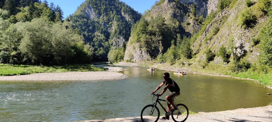 2. Salida desde Cracovia en coche/autobús o en nuestro transporte hasta Szczawnica, desde donde podrá empezar su aventura en bicicleta a lo largo del valle de Dunajec, en el mismo punto en el que termina el viaje de rafting. El sendero, Droga Pieninska llega a Lesnica por el lado eslovaco de la frontera, desde donde se puede continuar la ruta en bicicleta hasta Cerveny Klastor (Eslovaquia). Cogemos el sendero vía Vielki Lipnik - Cerveny Klastor - a lo largo del río Dunajec en Szczawnica. Es necesaria una buena condición física. La ruta es de unos 30 km con su punto más alto a 557 m y su punto más bajo a 563 m.